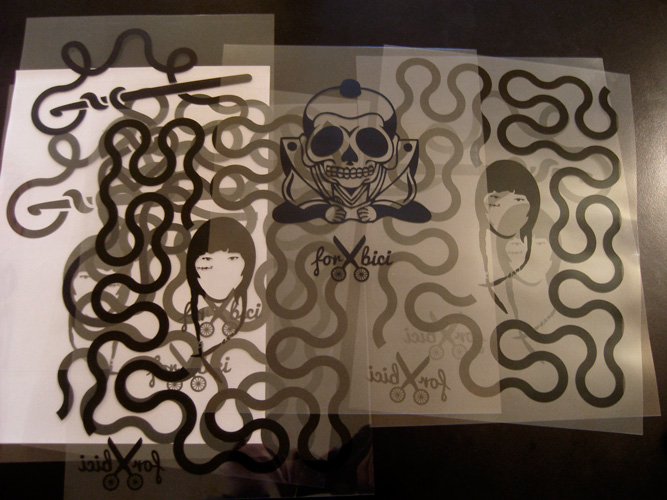Ancora molto partecipata la seconda serata dedicata alle bici + serigrafie + taglia&cuci, avvenuta ieri alla ciclofficina Unza!. Insieme abbiamo sperimentato il procedimento per impressionare i disegni dei partecipanti dalla pellicola al telaio — già spalmato di gelatina fotosensibile, ben asciugata dal giorno prima — con l’ausilio del bromografo autocostruito dagli operosi amici La Sericletta, che gestiscono la cicloffina durante le domeniche e il laboratorio di serigrafia nei martedì sera.
