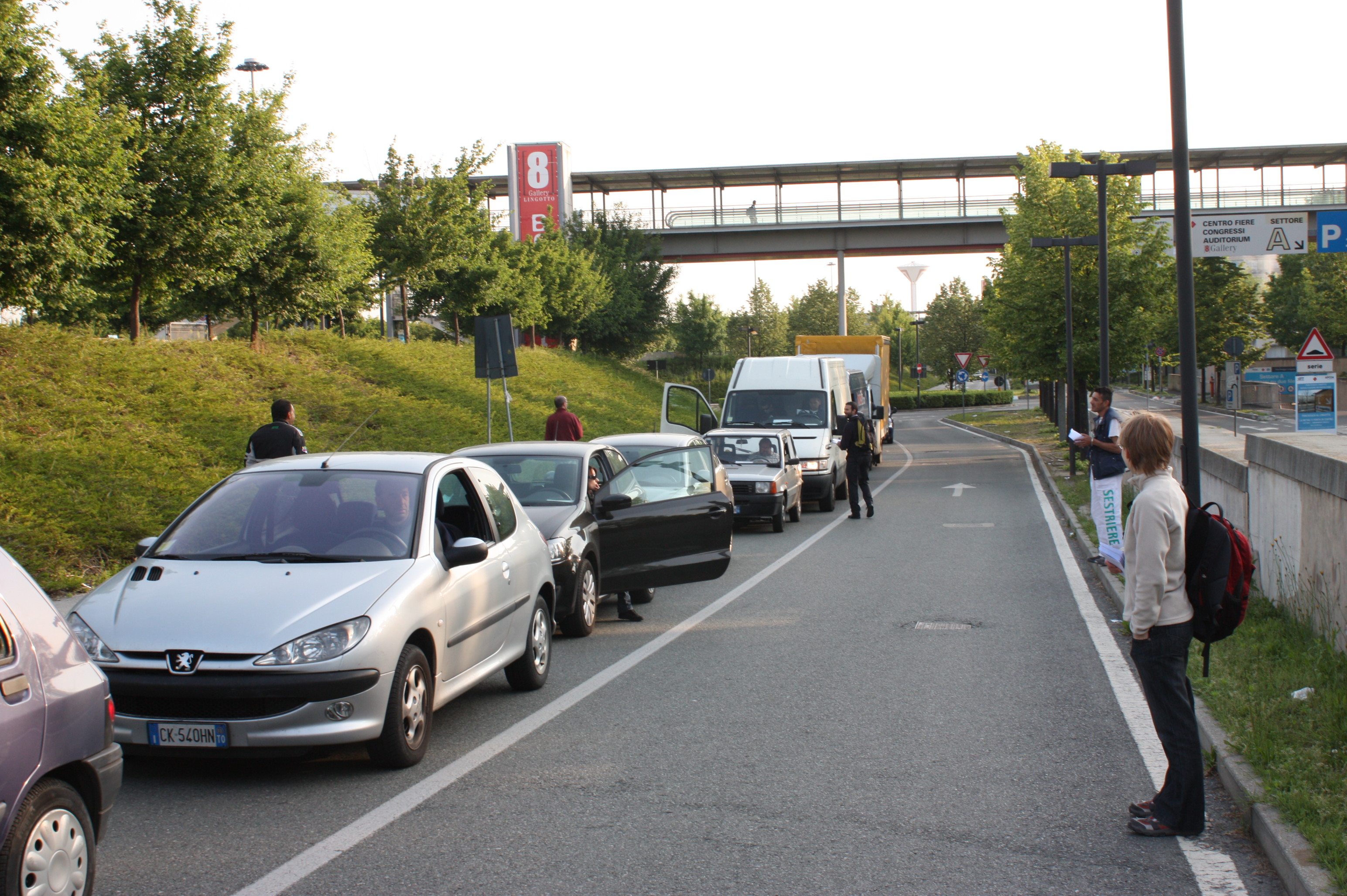 Una ventina di devoti torinesi del Santo hanno distribuito una lettera ai lavoratori ‘gli elettricisti, i magazzinieri, i montatori, le hostess e gli steward, gli stendisti, gli addetti alla sicurezza, gli uscieri, gli addetti stampa, gli addetti alle pulizie, i pubblicisti e i redattori come te sono gli elementi fondamentali per la buona riuscita del Salone. Senza di voi semplicemente la Fiera non sarebbe possibile.’ E continuava ‘Pensi che il valore che rappresentate in questa occasione vi sia stato riconosciuto correttamente? Pensi di essere stato adeguatamente tutelato e ricompensato per il lavoro che hai svolto? Oppure qualcuno ne ha approfittato? … Scrivici a sanprecario@csoagabrio.info oppure passaci a trovare il lunedì o il giovedì dalle 18:30 alle 20:30 in via Revello 5 presso il centro sociale occupato autogestito Gabrio’.