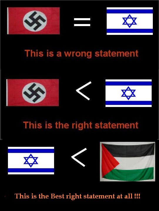 Attenzione: cosa state intendendo per "sionismo" ? Io per sionismo intendo il pensiero di una parte del popolo ebraico e non che ha, da prima della seconda guerra mondiale e della Shoa l'idea di fondare e costruire un nuovo stato d'Israele, stato di diritto lo definirei tanto quanto la Palestina per i palestinesi. Mi raccomando, non fraintendetemi, con questo non significa che io appoggi la politica assassina di Sharon, quanto non appoggio la politica altrettanto assasina dei kamikaze islamici, ma mi pare che la vostra idea di "sionismo" sia molto vicina a qulla dei nazi, date un'occho a http://www.forzanuova.org e poi ditemi se non ho ragione... In ogni caso spero solo di avervi frainteso, Massimo Rispetto.