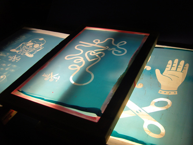 Ancora molto partecipata la seconda serata dedicata alle bici + serigrafie + taglia&cuci, avvenuta ieri alla ciclofficina Unza!. Insieme abbiamo sperimentato il procedimento per impressionare i disegni dei partecipanti dalla pellicola al telaio — già spalmato di gelatina fotosensibile, ben asciugata dal giorno prima — con l’ausilio del bromografo autocostruito dagli operosi amici La Sericletta, che gestiscono la cicloffina durante le domeniche e il laboratorio di serigrafia nei martedì sera.