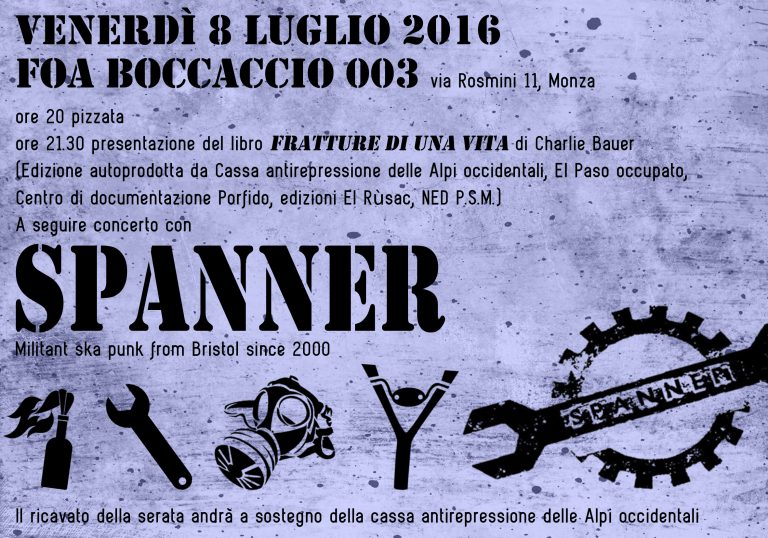 a seguire concerto di Spanner (Bristol) militant ska punk