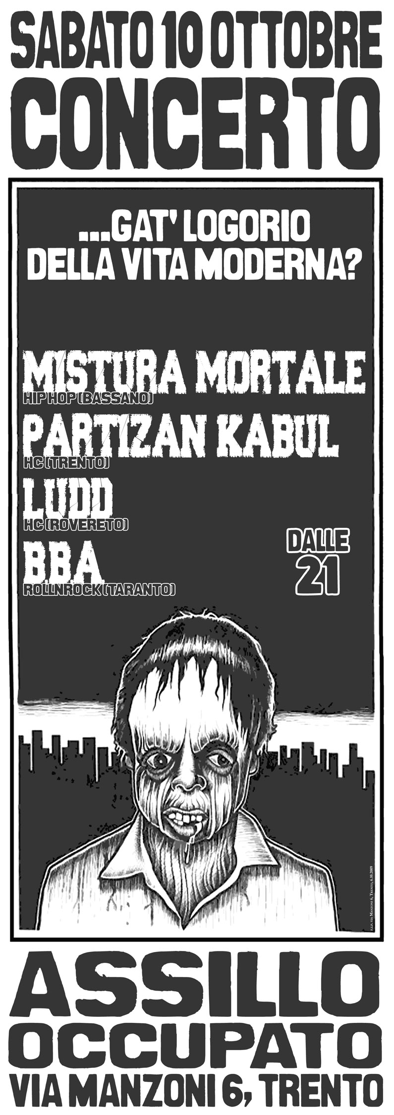 VERMI (garage-beat psichedelico da Bergamo) BLACK DAYS (all time blues da Spezia) LE CAROGNE (garage punk da Imperia) NO CHAPPI?BOURGEOIS! (rappop subumano da Neirone Nord)