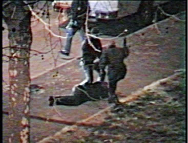 Alcuni fotogrammmi in cui si vede chiaramente una di queste mazze (primo carabiniere in fondo a destra). Nei fotogrammi successivi si nota che il carabiniere viene richiamato dal retro, si gira, mostrando nuovamente la mazza. E’ evidente dai fotogrammai che non si tratta dei manganelli d’ordinanaza.