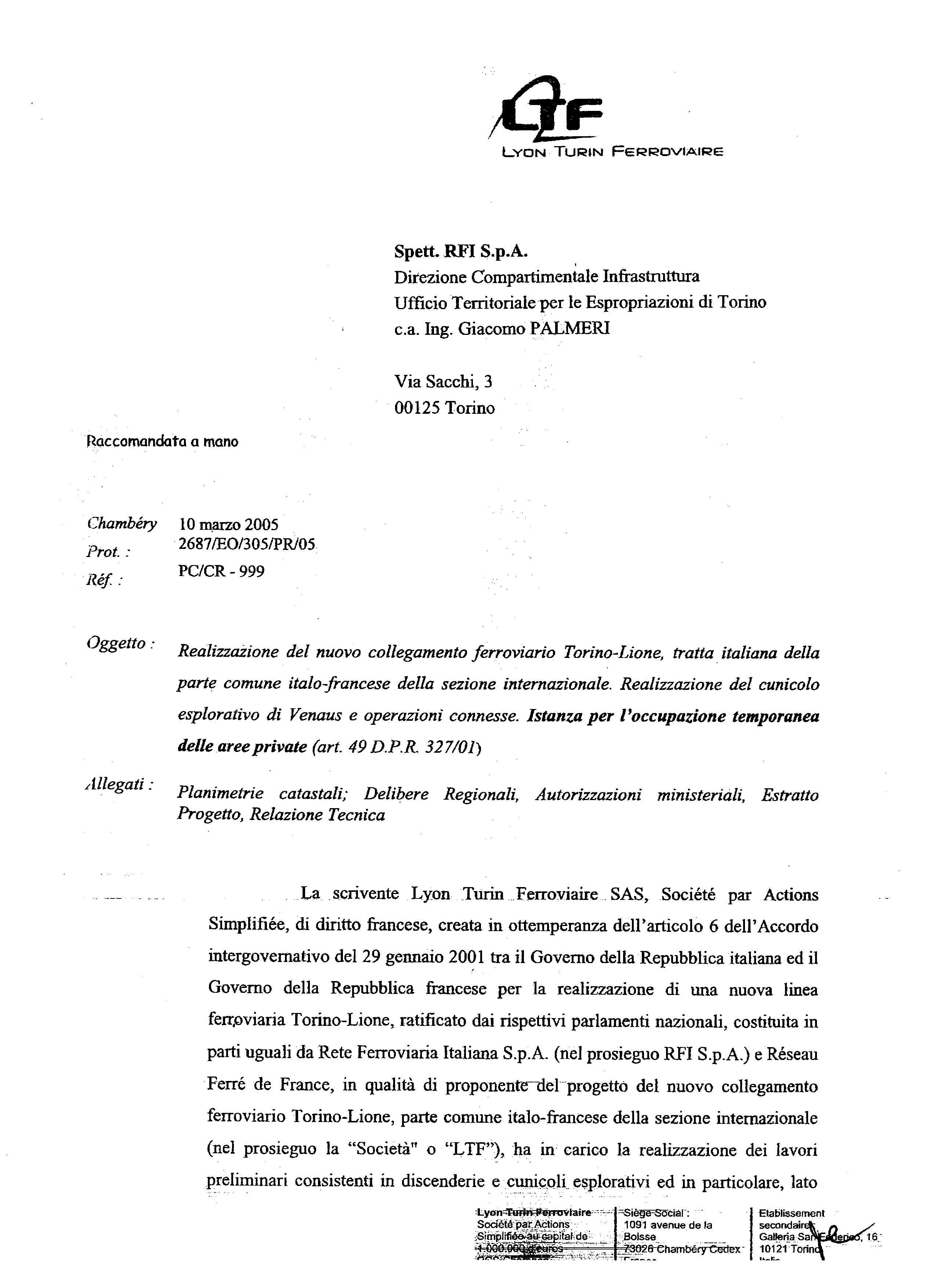 Fonti bene informate (vicine all'Ing. Moretti e a CMC) indicano che tra breve, "l'istanza per l'occupazione temporanea delle aree private di Venaus" verrą revocata ... e quindi per la Torino-Lione i sigg.ri dell'AV/AC s'attaccano al tram (anzi al 3no)!!!!