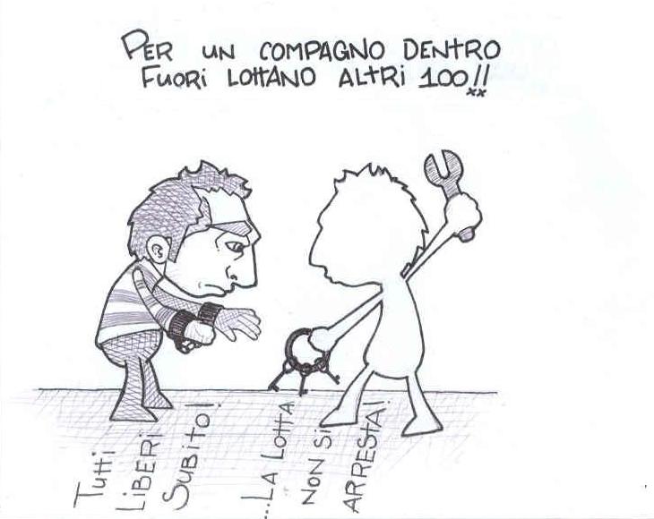 I disegni postati qui sotto sono a disposizione di qualunque realtà e singolo che voglia usarli per aiutare i compagni in carcere. La mia idea è quella di stamparli, fotocopiarli e attacarli qua e la per la città (ma questo è solo uno dei tanti usi immaginabili). Questo è il mio piccolo contributo per fare tornare tra noi i fratelli e le sorelle che ci sono stati rapiti.