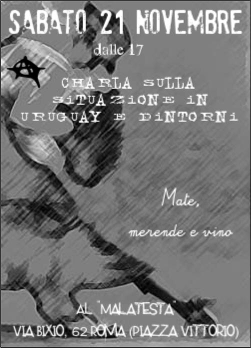 Sabato 21 novembre Charla sulla situazione in Uruguay e dintorni mate, merende e vino al "Malatesta" Start: 18:30