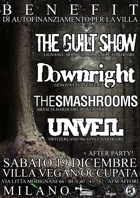 SABATO 19 DICEMBRE BENEFIT DI AUTOFINANZIAMENTO PER LA VILLA VEGAN OCCUPATA via Litta Modignani 66 - Milano dalle 22 con: DOWNRIGHT - Genova. Fastcore a seguire: AFTER PARTY ad oltranza! | ||