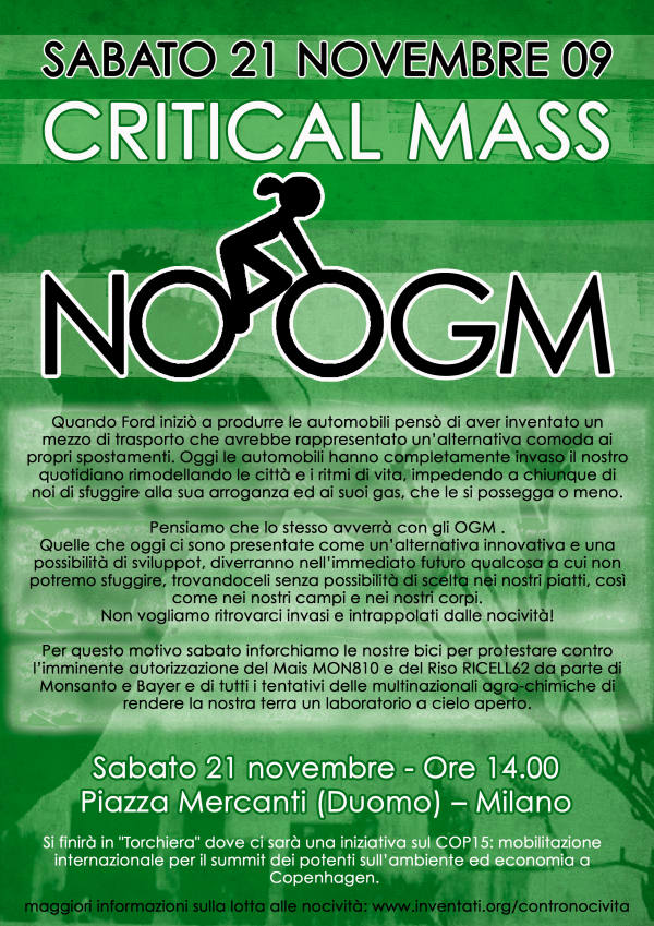 CRITICAL MASS CONTRO CHI CI VUOLE IMPORRE GLI OGM