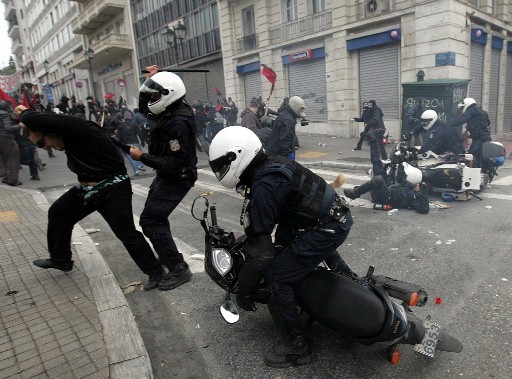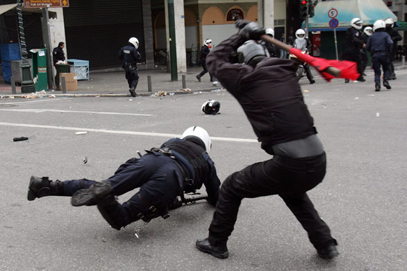 Ad Atene la marcia di protesta convocata alle 13:00 a Propilei è stata attaccata dalle forze di polizia anti-sommossa, prima ancora di partire. I manifestanti hanno lottato erigendo barricate di fuoco e costringendo la polizia a ritirarsi con l'utilizzo di pietre. I manifestanti anche occupato la sede rettorale dell'Università di Atene nel Propilei, ammainando la bandiera greca e sostituendola con una bandiera nera. La marcia s'è poi diretta verso piazza Omonia, dove degli scontri hanno avuto luogo e alcuni negozi sono stati distrutti e dati alle fiamme. A piazza Syntagma forze di polizia motorizzate (il team Delta) caricano i manifestanti, lanciando anche delle pietre