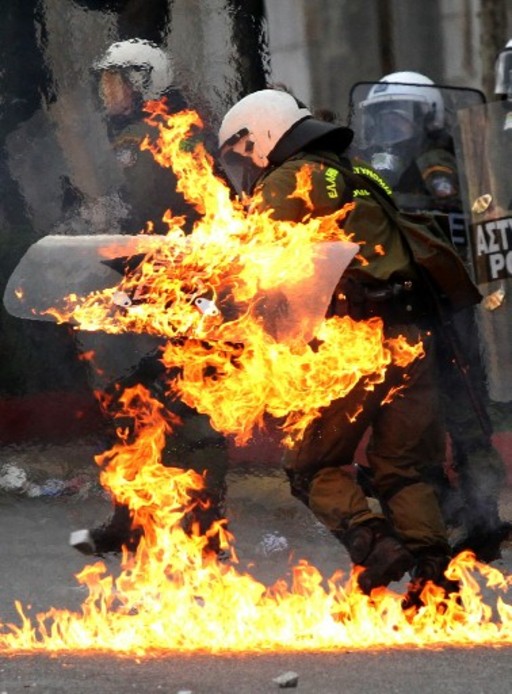 contro i compagni. Per via dell'orgia di violenza poliziesca, un membro anziano del Partito Rivoluzionario dei Lavoratori-trotzkista (EEK) è stato segnalato essere in gravi condizioni a causa delle lesioni riportate; gravemente ferita anche un'anziana militante. Al momento sono 60 i manifestanti fermati dopo questa carica.