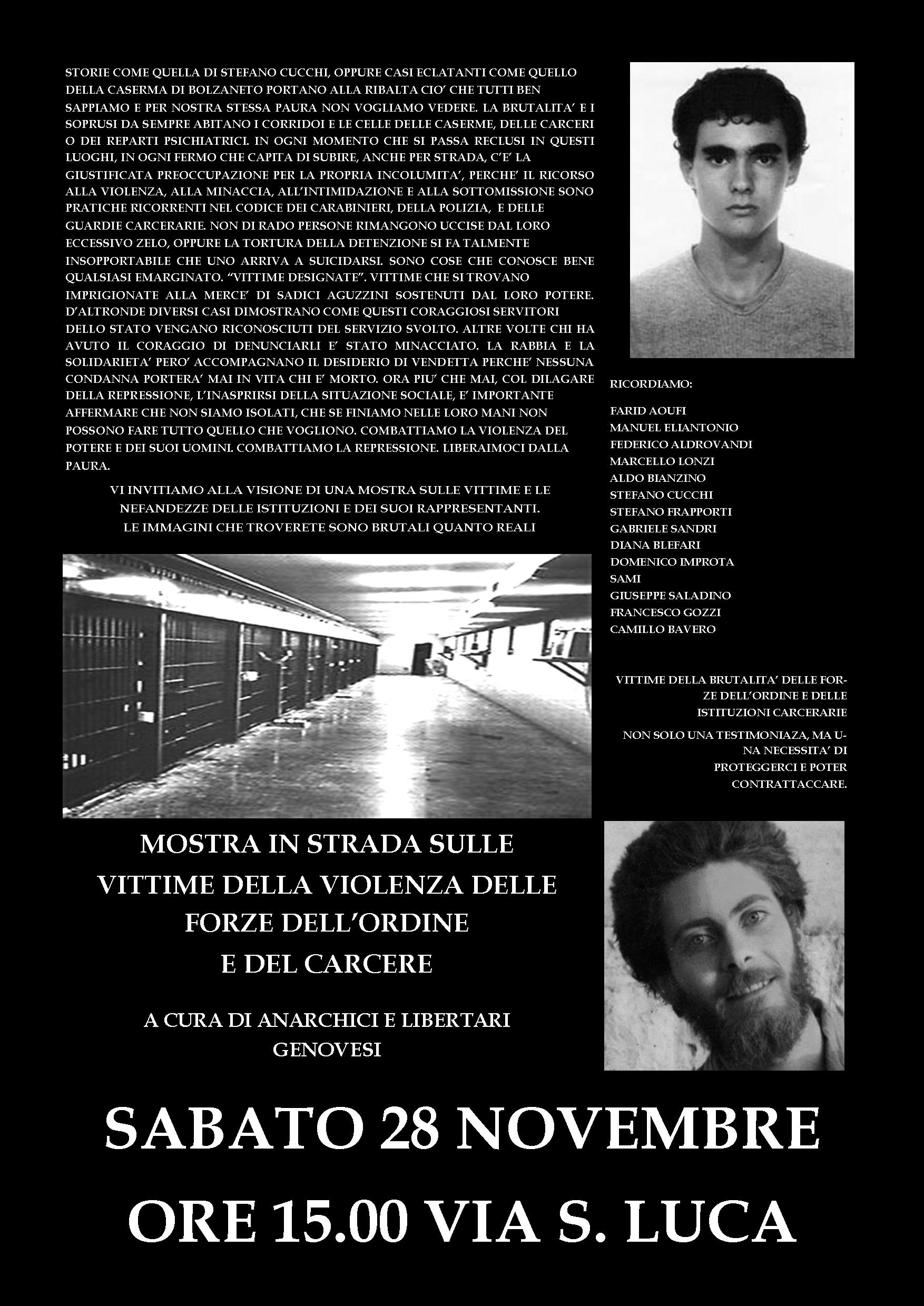 La giustizia di Stato a cui molti (ingenui, illusi o in malafede) si sono appellati per chiedere verità sui fatti di Genova è la stessa che ha assolto i vertici della polizia che avevano ordinato la mattanza dei manifestanti nelle strade, il massacro della scuola Diaz, le torture di Bolzaneto, e che ha condannato a pene lievi (che non sconteranno) alcuni degli esecutori materiali di quegli ordini; quella stessa giustizia che ha definito “legittima difesa” l'esecuzione di Carlo Giuliani.