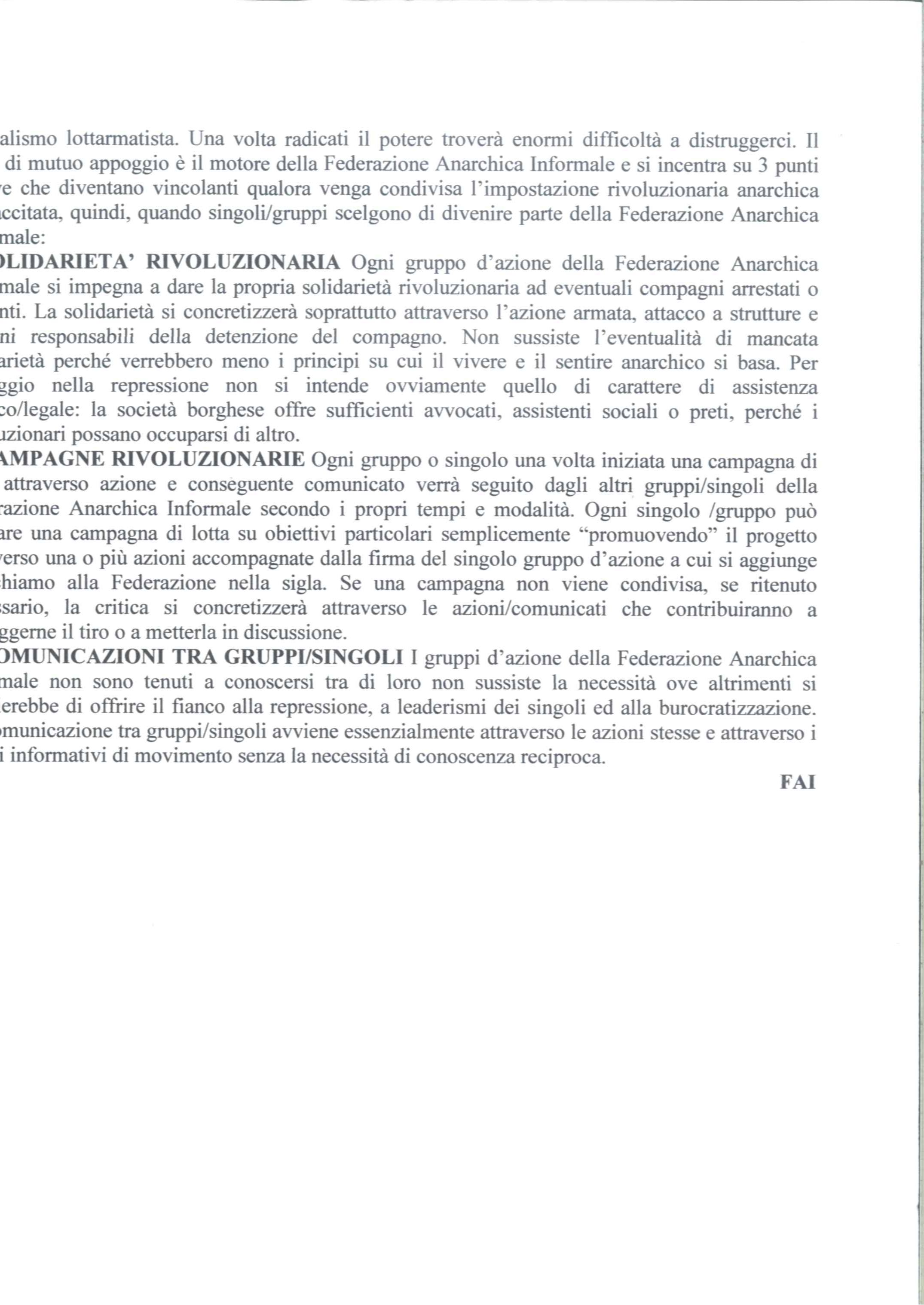 Pubblichiamo la scansione di un documento pervenuto per via epistolare nei giorni scorsi a diverse realtà anarchiche e di movimento in giro per l'Italia