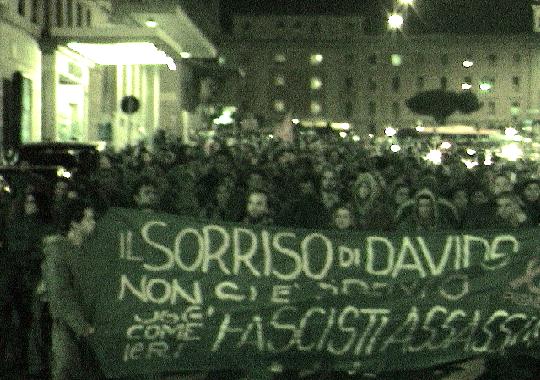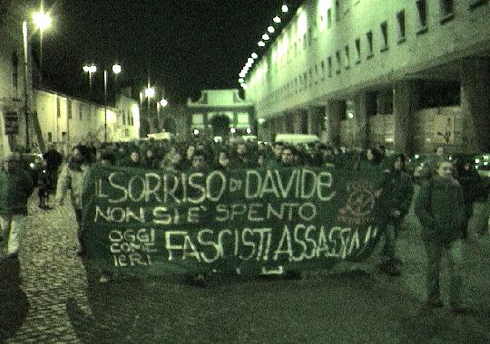 1500 persone circa hanno sfilato oggi nel centro di Roma da San Lorenzo a Piazza Esedra passando davanti al Viminale per chiedere giustizia accertamenti per la morte di Davide per mano fascista e per ricordare il compagno morto ieri dopo l'aggressione.