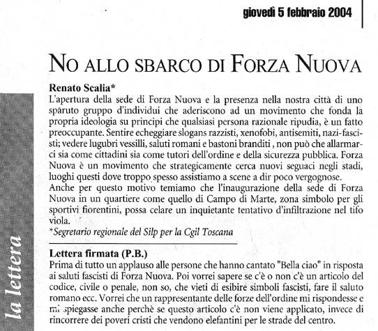 Lettera su Forza Nuova dall'Unitą Firenze e Toscana