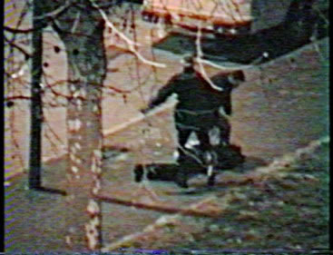 Alcuni fotogrammmi in cui si vede chiaramente una di queste mazze (primo carabiniere in fondo a destra). Nei fotogrammi successivi si nota che il carabiniere viene richiamato dal retro, si gira, mostrando nuovamente la mazza. E’ evidente dai fotogrammai che non si tratta dei manganelli d’ordinanaza.