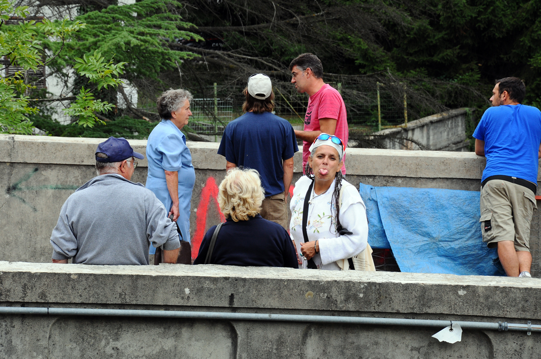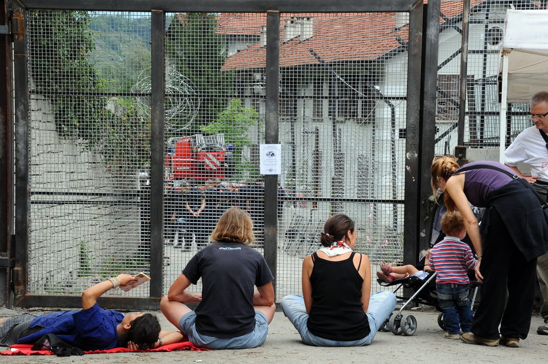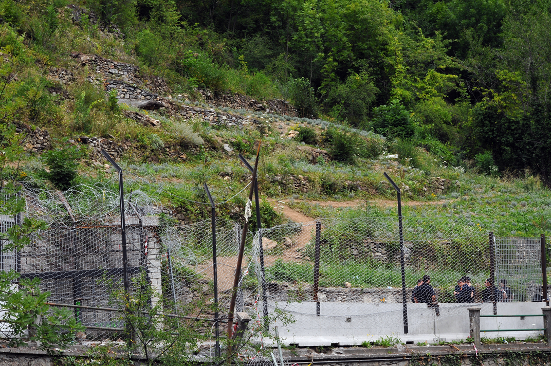 Ponte sulla Dora presso la centrale idroelettrica (Chiomonte). Sventola bandiera NO TAV.Cancello davanti alla centrale. L'assedio da parte dei manifestanti più determinati è continuo, la tensione è palpabile. I black bloc si preparano all'invasione.Un black bloc in jeans e maglietta a strisce, con evidente intenzione commemorativa delle giornate del luglio 1960 a Genova, si avvicina minaccioso al cancello. Indossa anche una maschera antigas.Incitato dagli altri black bloc, afferra la grata della cancello e la scuote rumorosamente.Il black bloc tenta di scardinare il cancello.Ora prova a spingerlo con tutte le sue forze per cercare di abbatterlo.Altri black bloc si apprestano allo sfondamento con attrezzature corazzate appositamente approntate. Un cattivo maestro dà loro man forte sospingendoli all'assalto.Uno dei black bloc si prepara ad aggirare il nemico con una manovra fulminea: attacco alle spalle.Intanto i più facinorosi si ammassano davanti al cancello. Non disdegnano di servirsi di feroci pit bull addestrati al combattimento: li lanciano al di là della barriera.Black bloc accorrono in massa da ogni dove assetati di scontri.No. Questo è troppo!Momento di tregua durante gli scontri. Sulla destra due black bloc approfittano dell'apertura del cancello per... conversare amabilmente!?