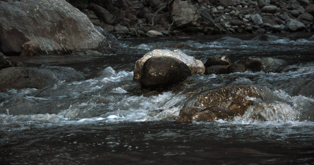 Il fiume Dora sul far della sera. Sullo sfondo il campeggio NO TAV.A sarà dura. Se oggi siamo 3000 Black Bloc, domani potremmo essere 10.000 Turi, dopodomani chissà...“La furia dell'acqua, nel punto in cui trascina e ammassa le pietre: questo è lo shih”. (Sun Tzu, L'arte della guerra).