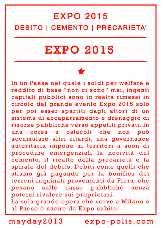 La MayDay di quest’anno finirà il 1° Maggio del 2015, all’apertura di EXPO 2015.