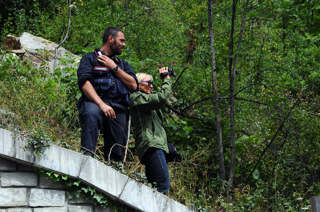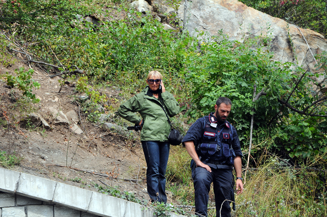 Sulla barriera di recinzione dell'area militarmente occupata presso Chiomonte una testimonianza dei giorni precedenti. Ricordiamo che l'Italcoge è la ditta incaricata dei lavori di recinzione e movimento terra che serviranno all'apertura dei cantieri del TAV. L'Italcoge è miseramente fallita ai primi di agosto, dopo aver accumulato debiti anche in tutta la Valsusa, dalle ditte di edilizia alle cartolerie che, ovviamente, non vedranno mai quanto loro dovuto. Il TAV è il futuro della Valle.Un Bed & Breakfast all'interno dell'area occupata dalle truppe militari.Campi di lavanda sequestrati e presidiati dalle forze di occupazione.Monito del Popolo NO TAV alle truppe occupanti.Area logistica strategica delle forze di occupazione. Azienda vinicola e museo archeologico.Questo era territorio della Libera Repubblica della Maddalena. E' la zona dei cosiddetti carotaggi, preliminari all'avvio dei lavori per il traforo di oltre 55 km. In realtà si tratta di una piazza di posizionamento militare del cantiere (per il collegamento autostradale). I carotaggi verranno effettuati più in basso alla destra del viadotto (v. foto seguenti).Estensione del cantiere militarizzato attraverso la costruzione di una via di collegamento (foto scattate il 5 agosto).I mezzi meccanici governativi (ma rigorosamente bipartisan) aggrediscono la boscaglia.Nonostante la strenua resistenza della vegetazione, la ruspa avanza senza pietà.In basso alcuni operai recingono il nuovo territorio sottratto al popolo.In alto gli agenti delle forze di occupazione controllano la situazione. Il terzo da sinistra si qualifica come capo plotone.Il Popolo NO TAV accorre in aiuto del bosco e si organizza per disseminarlo di casette sugli alberi. Sun Tzu disse: “Costringere il nemico a una forma che dovrà seguire”.Barriera con filo spinato per impedire l'accesso all'autostrada a chi volesse tentare il blocco dei mezzi diretti ai cantieri. Lungo la strada sterrata che costeggia il monte non è raro imbattersi in pattuglie di Cacciatori di Sardegna, di solito in gruppi di 6 guidati da un poliziotto locale e da un agente digos. Vi sentirete catapultati sul set del remake di “Berretti Verdi”: tenuta mimetica, cappello da cowboy, anch'esso mimetico, calcato sulla fronte, pistola e coltello da sopravvivenza alla cinta, superanfibi al ginocchio adatti a tutti i terreni. Niente paura, non sono particolarmente molesti; sono però avidi di generalità. Basterà fornire loro un documento, il Salvacondotto di cui sopra potrà tornarvi utile, e nel giro di un quarto d'ora ve ne sarete liberati senza ulteriori conseguenze. In genere non procedono a perquisizioni o ad altre forme di contatto con le persone, è sufficiente mantenere la calma e non fare movimenti bruschi (non si sa mai). La funzione loro affidata da Maroni & co. consiste nel pattugliare sentieri e strade sterrate della zona, secondo le “regole d'ingaggio” (così si è espresso un capitano dei carabinieri) in un contesto di distensione tra le forze in campo.