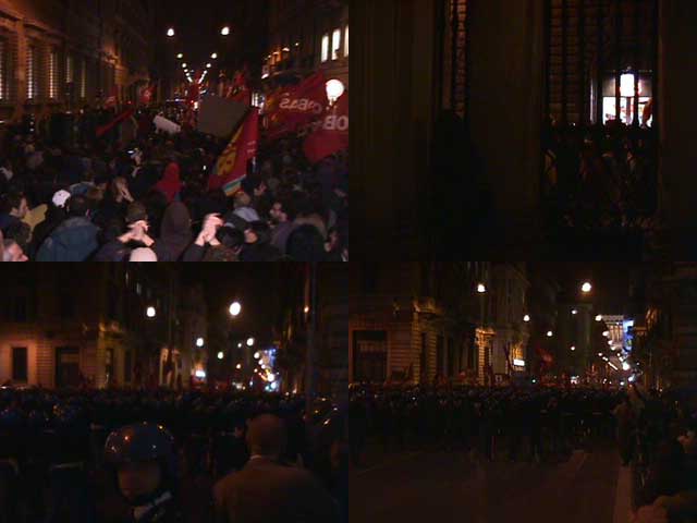 Il corteo lungo via del corso i CC increduli inditreggiano incalzati dalla massa c'e' chi tra i passanti cerca la ''salvezza'' dietro le sbare di una chiesa.