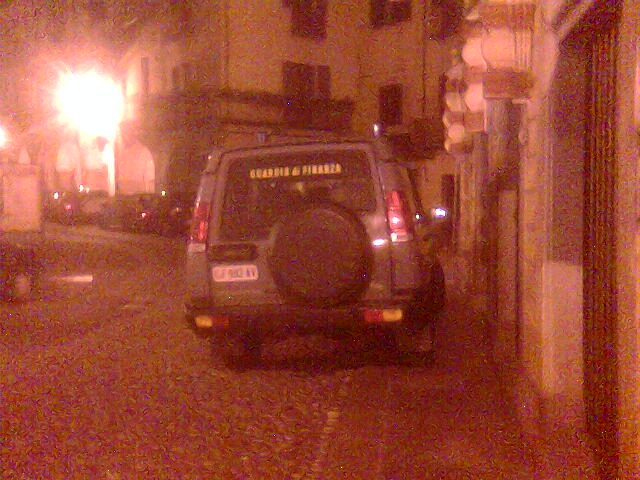 Città della Marchesa Adelaide di Susa: blindata, furgonette e jeeps ovunque, domande di ufficiali preposti alla sicurezza dei siti sensibili TAV circa la direzione da te scelta, imposizioni e divieti di circolazione su certe strade. Cittadini di Susa (Segusini) e frazioni linitrofe volenterosi e irremovibili a restare nella legalità e democrazia dello Stato Italiano che li tutela. Il fatto. 2 Furgoni della Finanza parcheggiati in 2a fila di fronte al bar-pizzeria Mirò e 1 jeep Land Rover Discovery stazionata illegalmente e in modo abominevole: due ruote sul marciapiede della Farmacia e mezza fiancata sx occupante parte della strada (notare strettoia dovuta all'angolo dell'edificio torre dell'orologio).