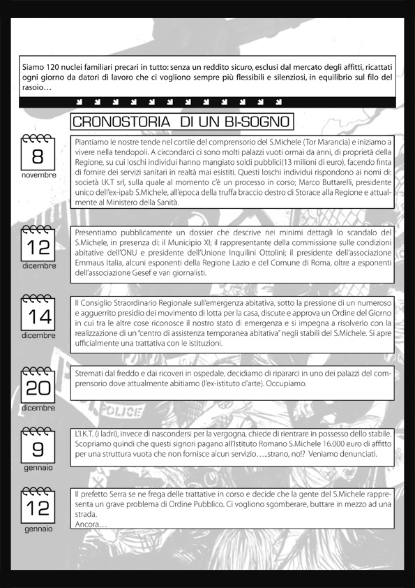 12 dicembre Presentiamo pubblicamente un dossier che descrive nei minimi dettagli lo scandalo del S.Michele, in presenza di: il Municipio XI; il rappresentante della commissione sulle condizioni abitative dell’ONU e presidente dell’Unione Inquilini Ottolini; il presidente dell’associazione Emmaus Italia, alcuni esponenti della Regione Lazio e del Comune di Roma, oltre a esponenti dell’associazione Gesef e vari giornalisti.
