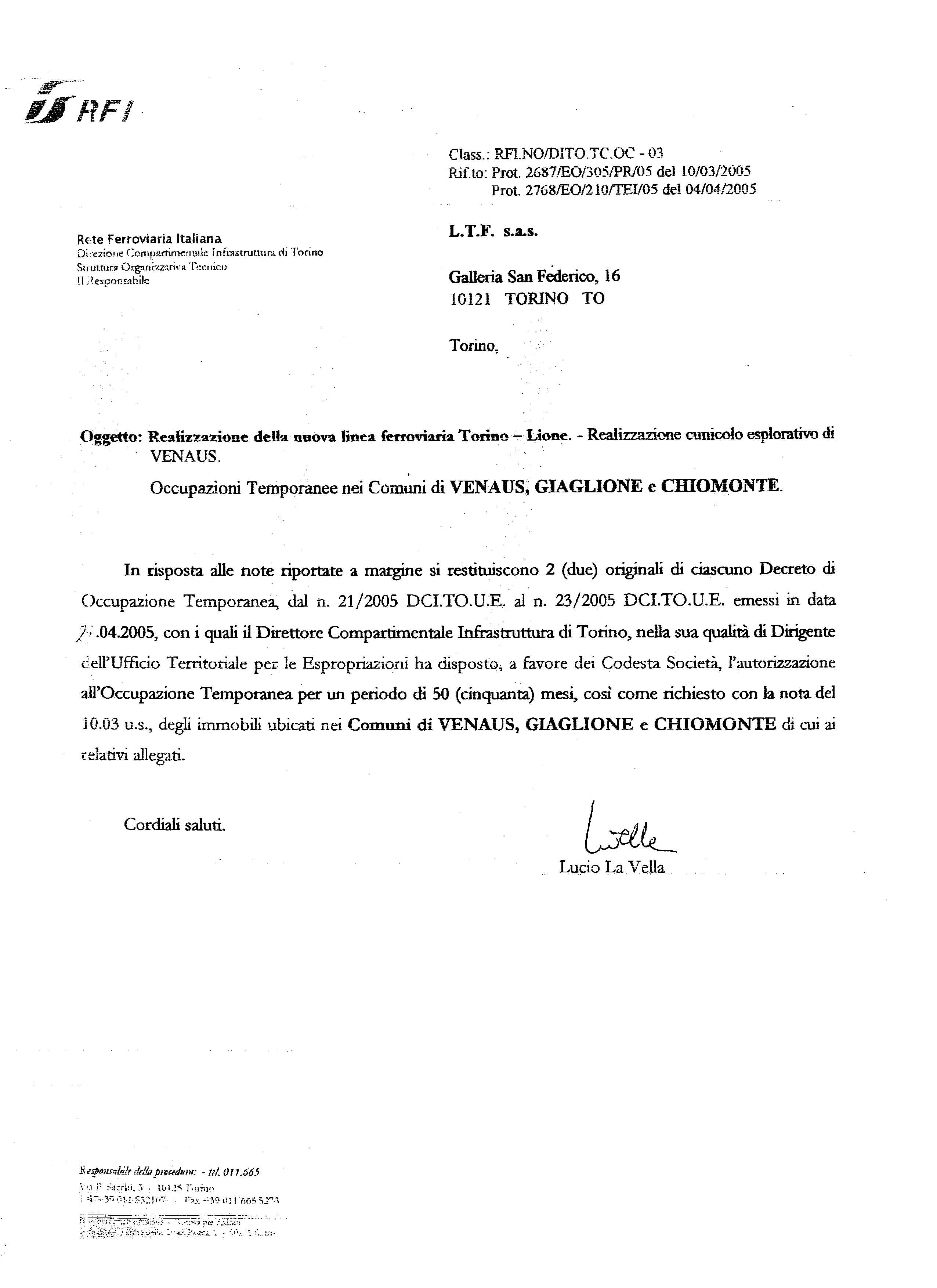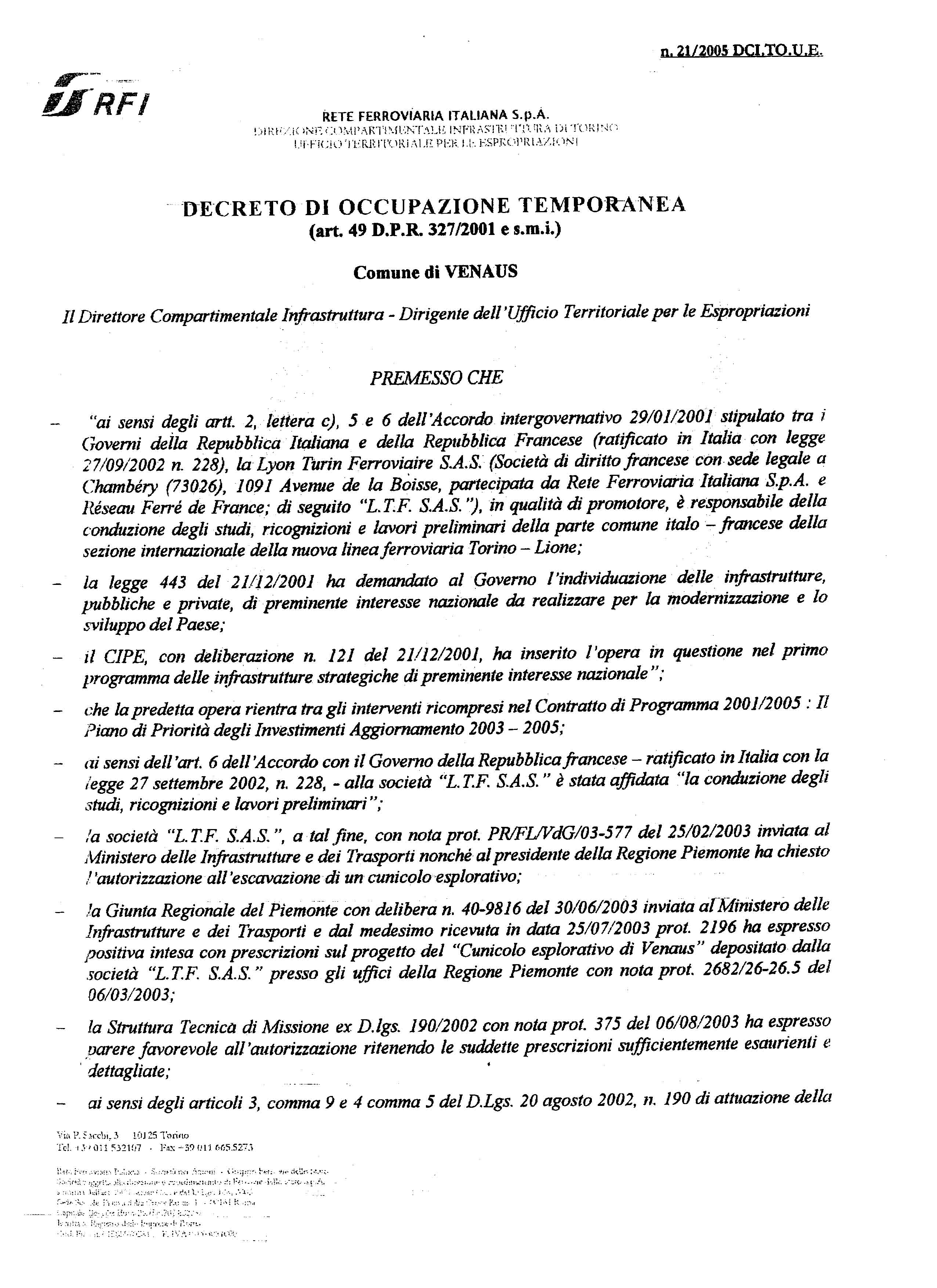 Fonti bene informate (vicine all'Ing. Moretti e a CMC) indicano che tra breve, "l'istanza per l'occupazione temporanea delle aree private di Venaus" verrą revocata ... e quindi per la Torino-Lione i sigg.ri dell'AV/AC s'attaccano al tram (anzi al 3no)!!!!