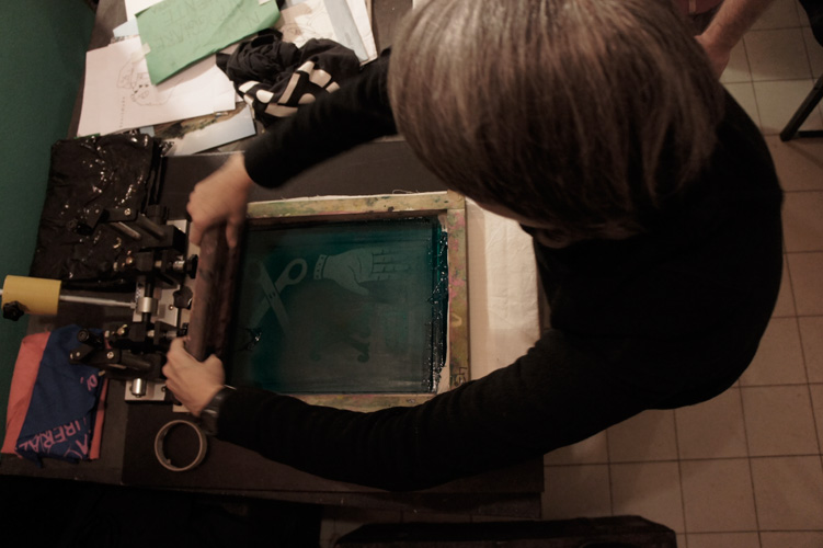 Ancora molto partecipata la seconda serata dedicata alle bici + serigrafie + taglia&cuci, avvenuta ieri alla ciclofficina Unza!. Insieme abbiamo sperimentato il procedimento per impressionare i disegni dei partecipanti dalla pellicola al telaio — già spalmato di gelatina fotosensibile, ben asciugata dal giorno prima — con l’ausilio del bromografo autocostruito dagli operosi amici La Sericletta, che gestiscono la cicloffina durante le domeniche e il laboratorio di serigrafia nei martedì sera.