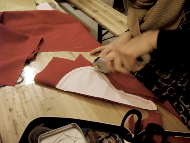 Nel mentre, fra intervalli di buio — 5 minuti per telaio necessari alla fotoincisione — e luci accese, si tagliavano le stoffe a misura dei cartamodelli dei cappellini e coprisella.