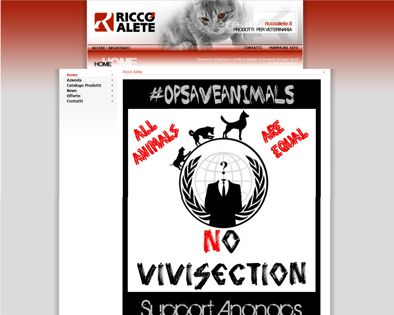 Anonymous vuole sottopporre alla Vostra attenzione l'azione intrapresa nei confronti del sito www.riccoalete.it, noto fornitore del lager Green Hill.