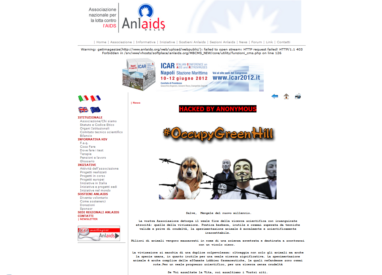 Anonymous sottopone alla Vostra attenzione un'ulteriore azione intrapresa a breve distanza dalla precedente. Target: http://www.anlaids.org/web/index.php?pag=290