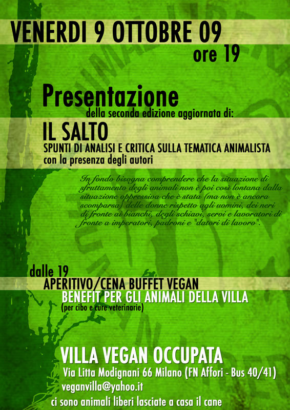 A seguire invitiamo tutti e tutte ad andare alla festa del Parco Canile "VitaDaCani" ad Arese, dove si potrà gustare cibo vegan, partecipare a giochi e iniziative e ascoltare un concerto, tutto benefit per questa struttura che ospita tantissimi animali. Per informazioni: www.vitadacani.org