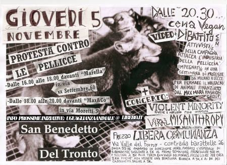 L'ultima volta a Milano eravamo in 75 davanti a 'La Rinascente', per mostrare la nostra rabbia per gli accordi non mantenuti. Questo segnale ha avuto de iriscontri e la dirigenza sta adesso incontrando attivisti di AIP per mettere a posto la situazione. Nonostante questo passo in avanti rimane ferma la protesta nei loro confronti fino a quando inserti di pelliccia saranno presenti nei loro scaffali. Fino alla fine...Fino a che non verranno mantenuti gli accordi presi. Noi saremo davanti alle loro vetrine, a far sentire il nostro dissenso.