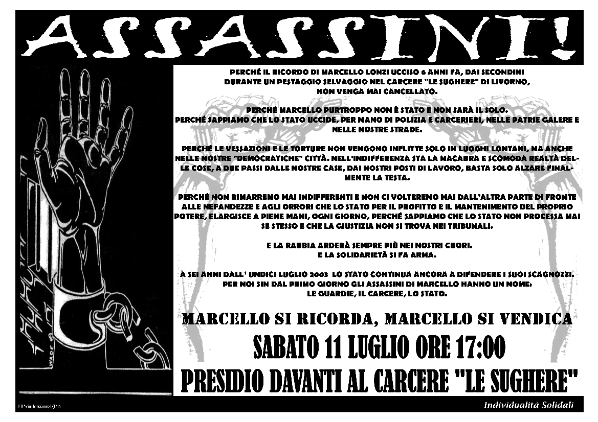 Per ricevere il manifesto (50x70), contattare anarchicisolidali@virgilio.it o cp 88 56127 Pisa centro c/o Bonamici F.