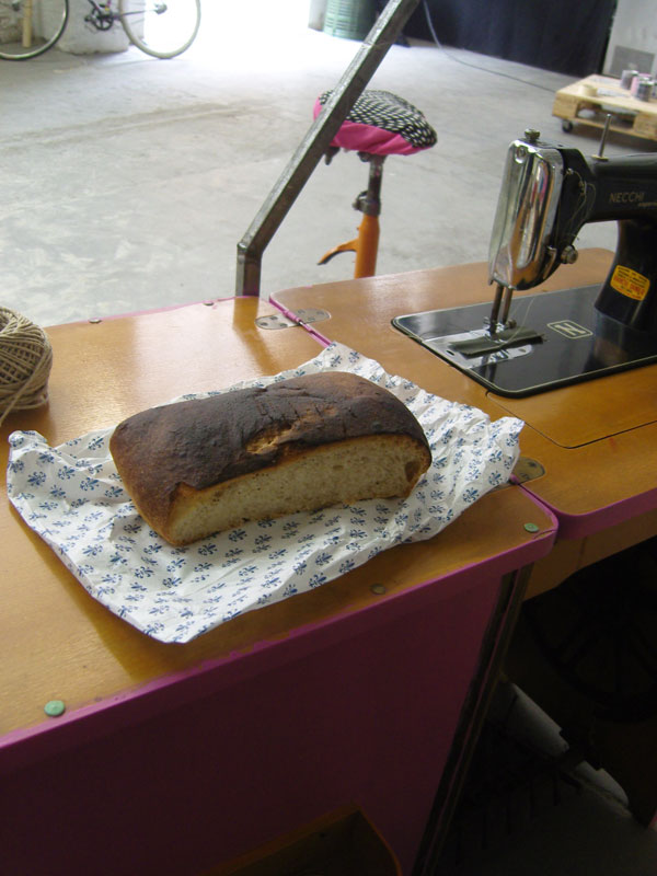 Strumento d’eccezione la Cucicletta, sistemata a pennello per l’occasione, col quale si è cucito (e pedalato) qualche coprisella per testare i nuovi cartamodelli serpici.