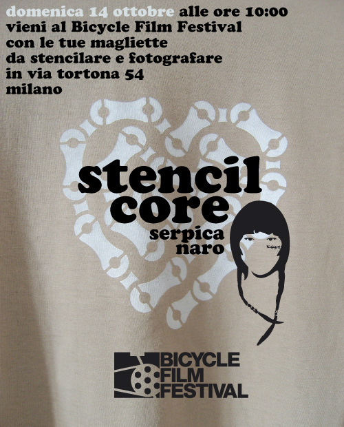 L’ultima giornata del festival, avvenuta all’area ex Ansaldo di via Tortona a Milano, si è conclusa in bellezza domenica 14 ottobre con un laboratorio molto partecipato di stencil su tessuto (perlopiù magliette rigorosamente portate da casa), con soggetti ciclici creati ad hoc. A dispetto del titolo scelto per la giornata dall’organizzazione — Lazy Sunday — si è lavorato-giocato-sperimentato-pasticciato dal mattino fino al pomeriggio inoltrato, mentre dall’altro lato del capannone partivano la Red Hook Criterium e le finali di un torneo di bike polo.