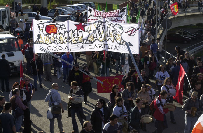 Eccovi alcune immagini fotografiche raffiguranti ritagli dell'imponente corteo dei 100.000 che, il 23 Novembre 2002, attraversņ le strade di Cosenza, regalando alla cittą intera una delle pił straordinarie giornate mai vissute nel capoluogo bruzio. Gente proveniente da ogni dove, tantissimi i colori, gli striscioni, le bandiere ed altro ancora....