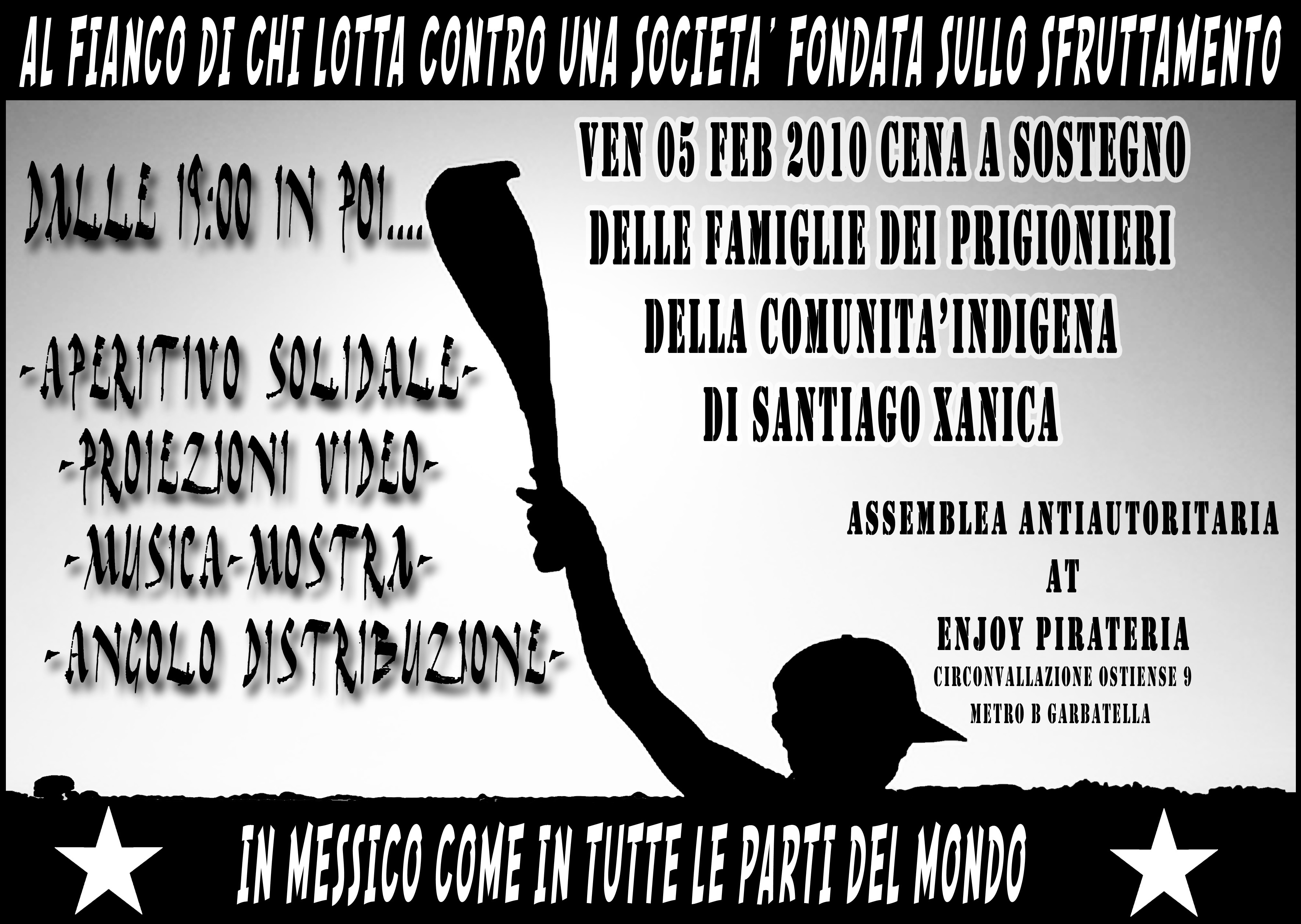 APERITIVO SOLIDALE E CENA BENFIT PER LE FAMIGLIE DEI PRIGIONIERI DELLA COMUNITA' XANICA IN MESSICO