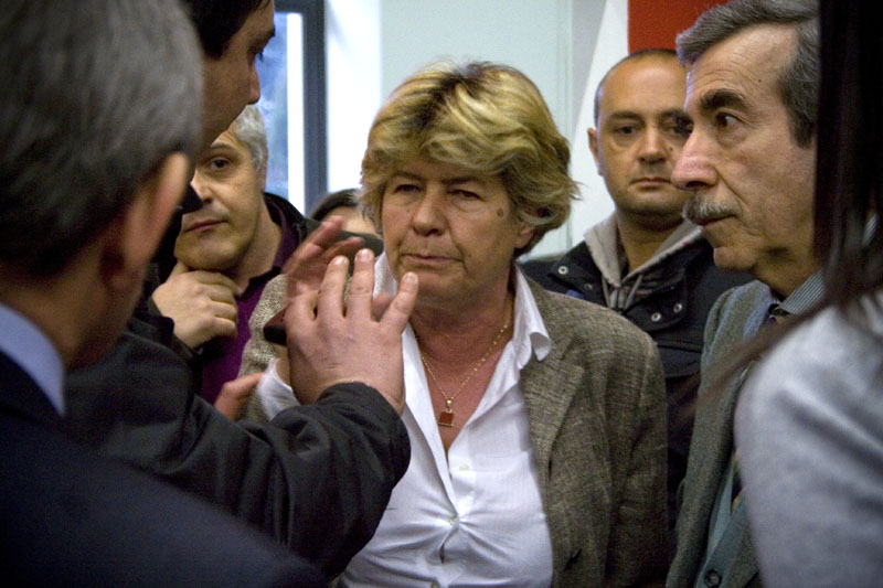 CAMUSSO (OMNIROMA) Roma, 22 MAR – Slogan, striscione e urla questo pomeriggio contro il segretario generale della Cgil Susanna Camusso da parte di alcune decine di manifestanti dei “Punti San Precario”. La contestazione è avvenuta all’interno della libreria Rinascita di Via Savoia dove la leader sindacale era intervenuta per una conferenza. “Abbiamo chiesto al segretario di non essere presente in questa libreria perchè da tempo i lavoratori delle tre librerie Rinascita attendono di essere pagati e sono precari – ha detto uno dei ragazzi dei Punti San Precario – e invece lei non ha voluto ascoltarci è intervenuta lo stesso”. I manifestanti hanno esposto alcuni striscioni uno tra i quali recitava “Rinascita libreria di precarietà, la Cgil da che parte sta?”. Continuando ad interrompere l’intervento della Camusso con slogans. A parte l’accesa discussione comunque non ci sono stati momenti di tensione. Poco fa la direzione della libreria ha proposto ai ragazzi un incontro per discutere della vicenda. gca 221823 MAR 11