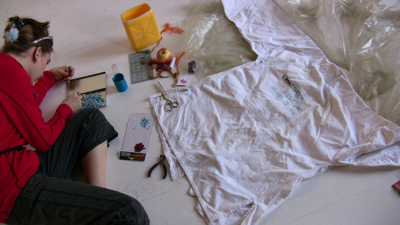 The workshop was divided in two parts. The first is theoretical and revolved around a discussion on contemporary life at work, by highlighting issues and questions. The second part was practical construction of personal or collective “multiforms”, the converse of Fordist uniforms, expressing individual qualities but also collective demands and needs.
