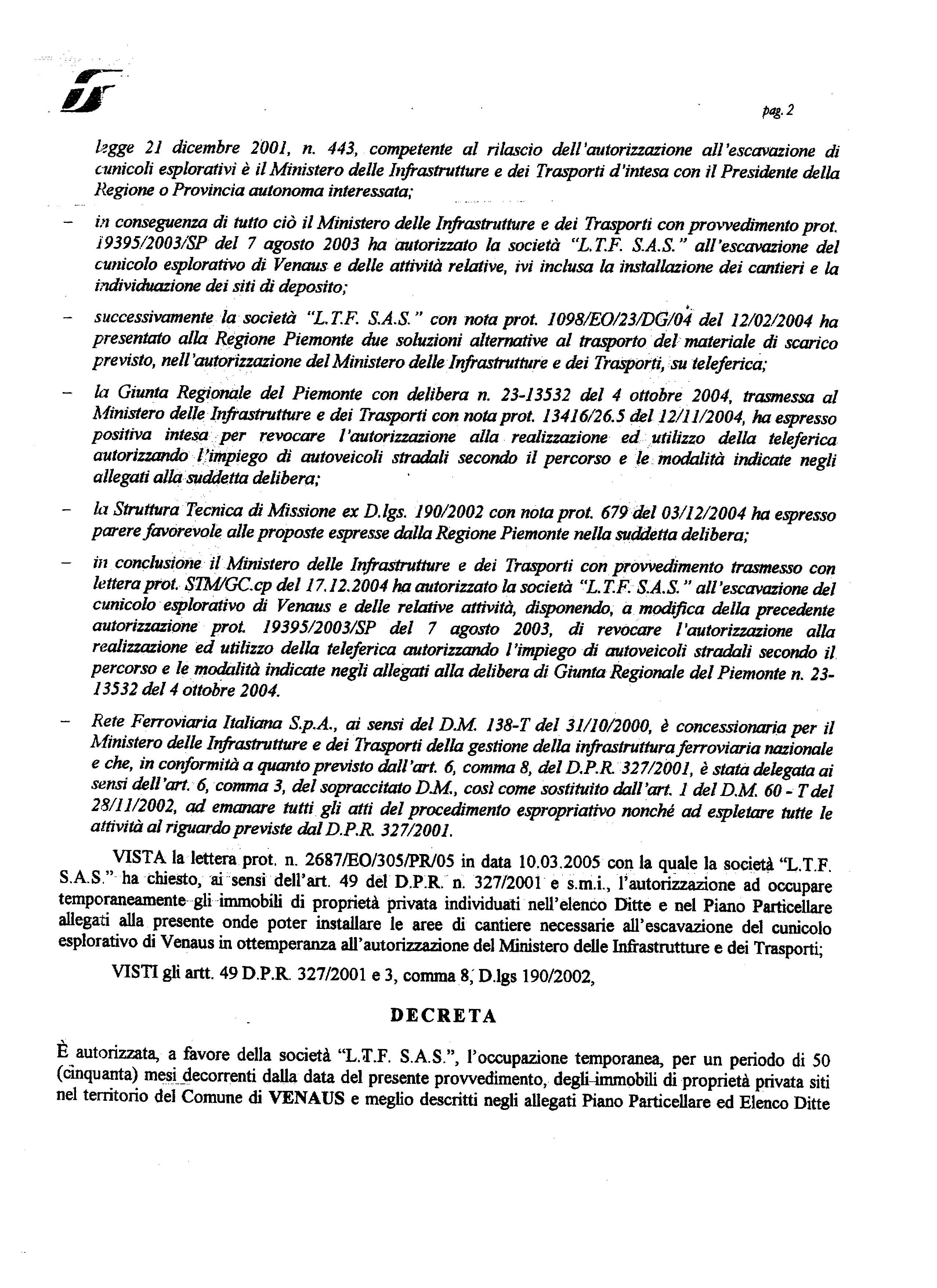 Fonti bene informate (vicine all'Ing. Moretti e a CMC) indicano che tra breve, "l'istanza per l'occupazione temporanea delle aree private di Venaus" verrą revocata ... e quindi per la Torino-Lione i sigg.ri dell'AV/AC s'attaccano al tram (anzi al 3no)!!!!