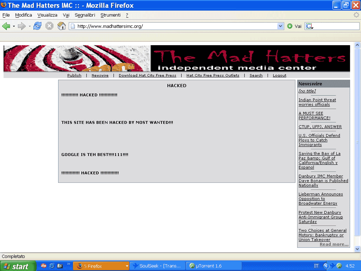 nella notte è stato attaccato il sito http://www.madhattersimc.org/