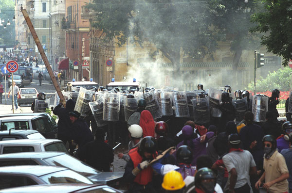 Una leggenda metropolitana vuole immortalato ogni attimo degli avvenimenti genovesi del luglio 2001. Come tutte le leggende contiene un elemento di verita', anzi piu' di uno. Migliaia di cineprese digitali, decine di migliaia di macchine fotografiche. Tutto vero. |