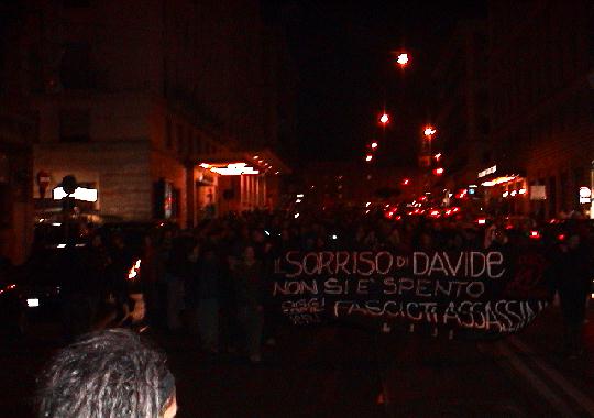 1500 persone circa hanno sfilato oggi nel centro di Roma da San Lorenzo a Piazza Esedra passando davanti al Viminale per chiedere giustizia accertamenti per la morte di Davide per mano fascista e per ricordare il compagno morto ieri dopo l'aggressione.
