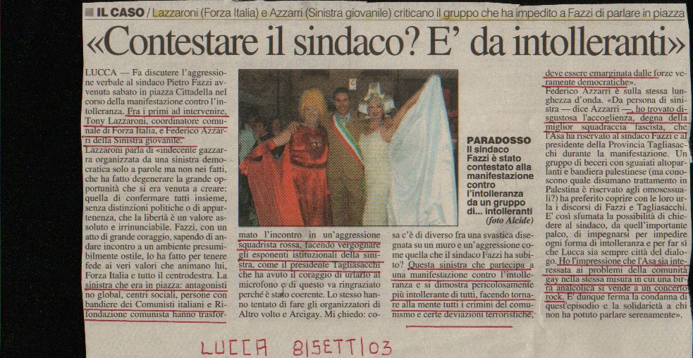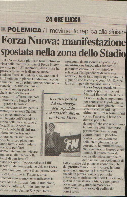 Aggiornamenti da Lucca:il sindaco Fazzi si schiere contro il corteo di Forza Nuova .