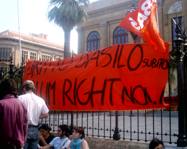 Più di 500 persone hanno sfilato oggi per il centro storico di Palermo in un corteo per chiedere il diritto d'asilo immediato a tutti gli immigrati.