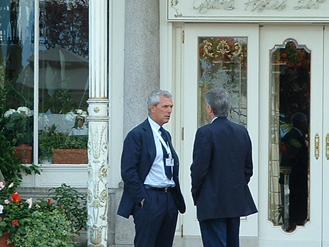 Viene il questore, saluta i giornalista locali, cordialità, presentazioni, per ultimo dico sorridendo: "io non c'entro, un passante" lui abbozza e continua. Alla domanda : "verrà Bush?" Risponde dicendo che nel caso, come possono confermare i giornalisti che lo conoscono, avrebbe già chiuso il lungolago.