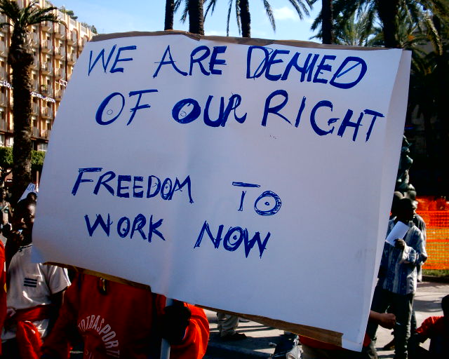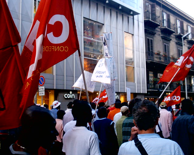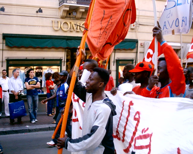 Ieri l'ennesimo atto della battaglia dei migranti per il riconoscimento del loro diritto d'asilo: in circa 500 hanno sfilato per il centro storico, da p.zza Politeama fino a p.zza Bologni.