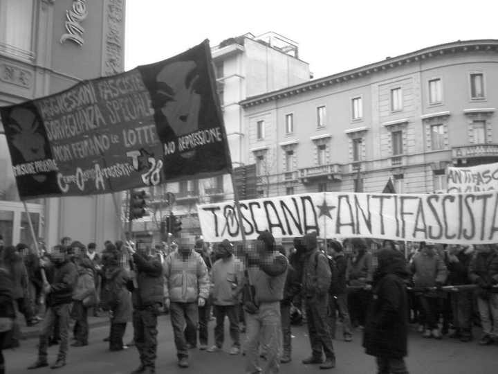 foto e clip dal corteo antifascista di ieri a bergamo dopo l'incendio dei c.s. pacì paciana (bg), o.r.so. (mi) e mag47 (bs)