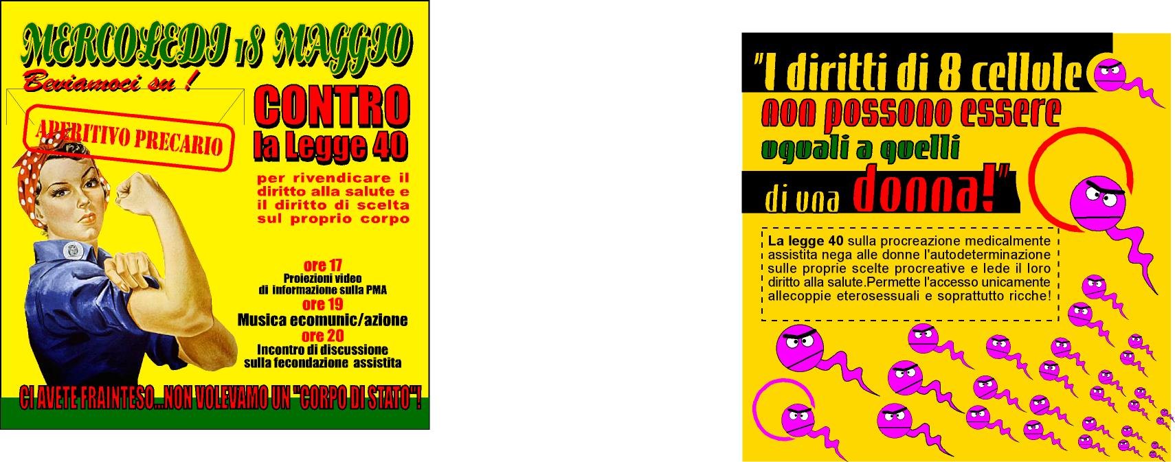 MERCOLEDI 18 MAGGIO Beviamoci su! APERITIVO PRECARIO Contro la Legge 40 per rivendicare il diritto alla salute e il diritto di scelta sul proprio corpo